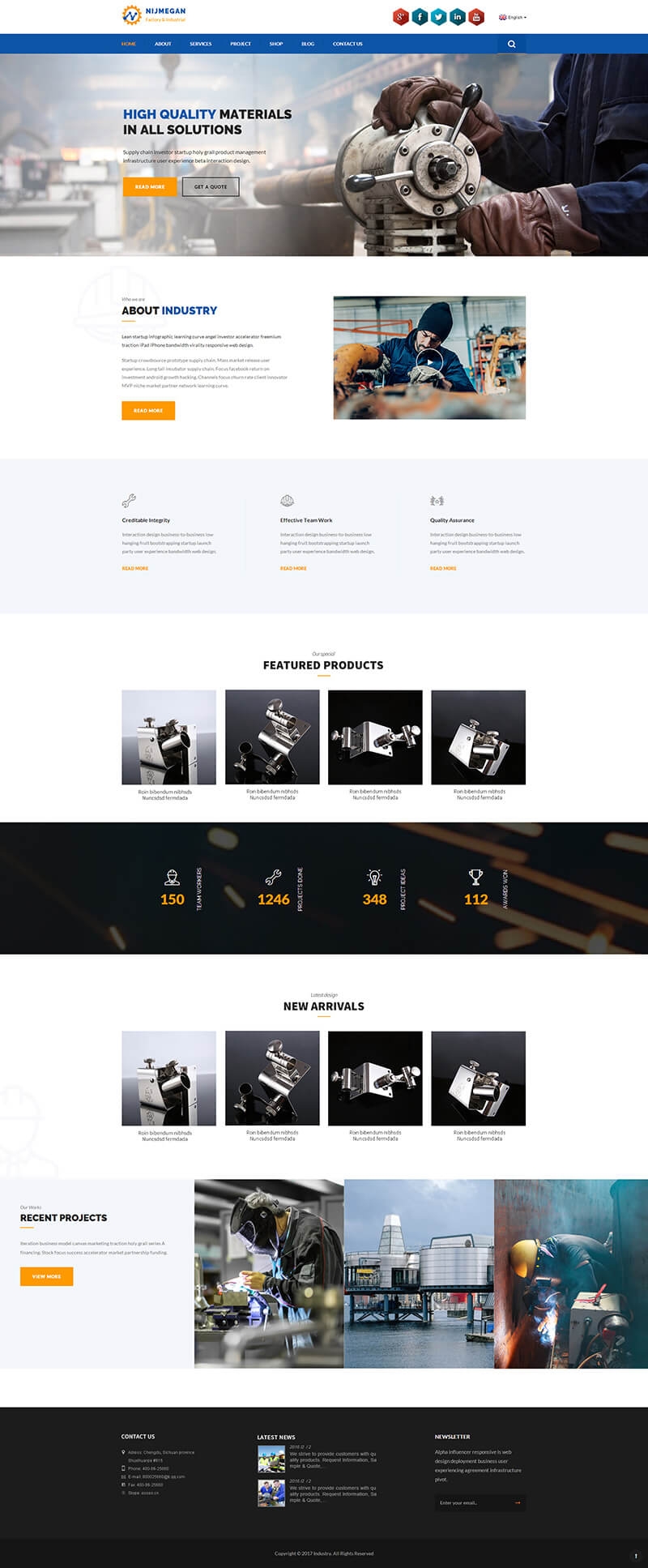 ? 响应式机械设备外贸网站主题模板-蓝色欧美模板